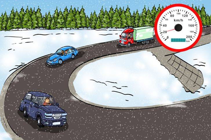 When driving on a slippery road, when going up and down bridges. As a rule, the sand-salt mixture comes off quickly from them and that’s why they represent an increased source of danger for cars.