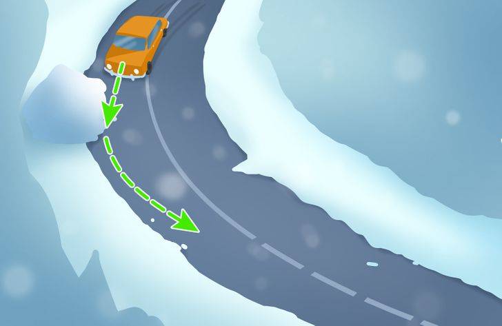 It’s necessary to keep the steering wheel turned to the same direction and get back to the road by constantly pressing the gas.